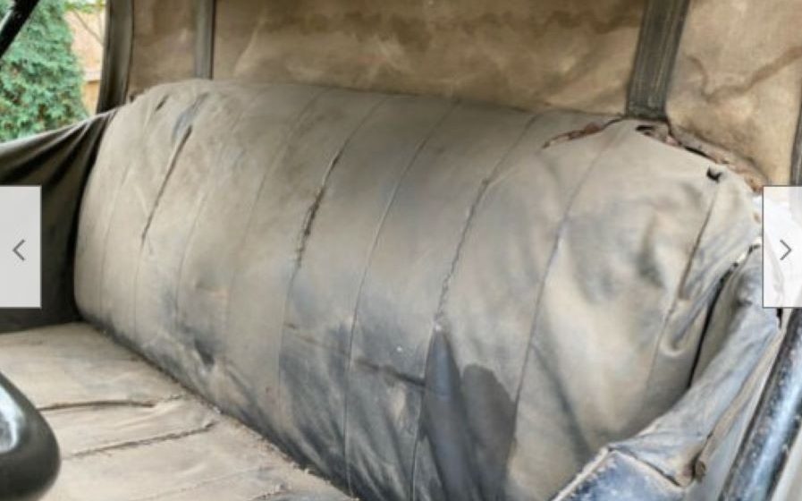 There is no image of the instrument panel but if you’ll recall ever seeing one in a Model T, there’s not much to it. As for the single bench seat, here you go, dusty, split, and original. It’s of little consequence as the interior of one of these Ford roadsters is small and minimalist – it won’t take a lot of effort to make it presentable. There’s a partial glimpse of the floorboard provided and it appears to be sound.