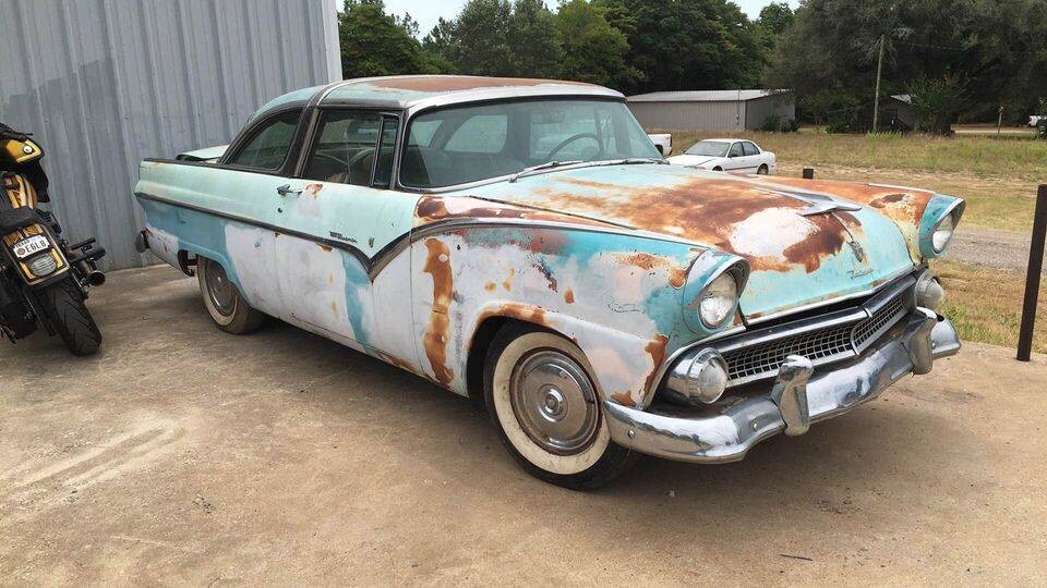 Like some of GM’s products, the 1955 Fords featured panoramic windshields, a new trend for the latter 1950s. With this setup, the A-pillars have a vertical angle which offers the driver greater visibility. From what we can see the glass is all good or at least not cracked. Once restored, this Ford would be a car less often seen than its contemporaries from Chevrolet which have a greater following with collectors.
