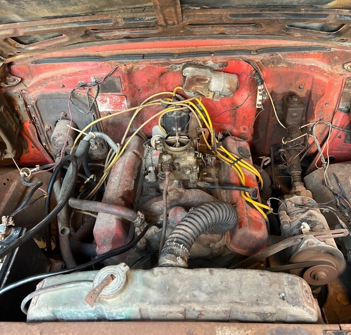 Is that red object seen through the front grille a red plastic gas can? Possibly used to feed fuel to the carb and thus the claim of “running”? I will agree with many of previous comments about this project and at this price should make nearly all sensible buyers run away.