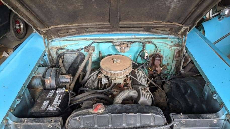 An easy assumption is that this car left with factory with a 283 V8 and a Powerglide automatic. What resides there now is a later 350 with a Turbo-Hyrdramatic. There is no mention how long ago this transplant took place, but given the lack of cleanliness under the hood, I would say the car hasn’t been on the road much lately. The seller says the car runs and drives but uses no adjectives to describe how well it performs these functions. The wagon wears a set of later model Rally wheels, something from 1971 on.