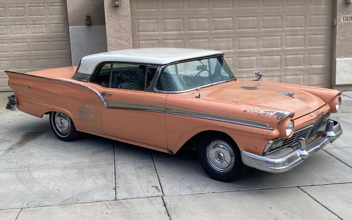 Coral Sand and Colonial White. Great ’50s colors for sure. My grandmother had a ’57 Fairlane 500 4-door hardtop in Willow Green and Colonial White. It had the 312 also. Beautiful car that she cared for very well, but East Coast salt got the better of it and it was gone by 1975.