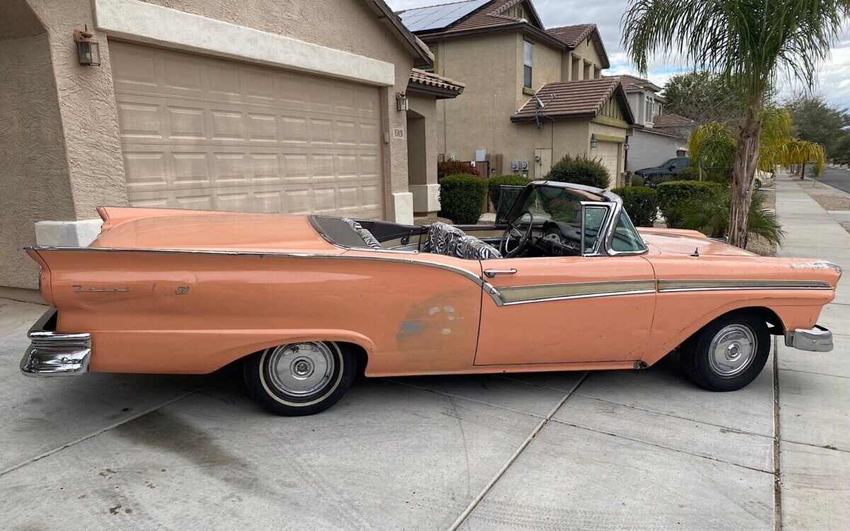 Apparently, the seller has owned this car for many years without realizing that the motor is a 312 cu. in. Y-block. He was told by the prior owner that the motor was replaced with a 292 V8 but according to the casting number, it’s a 312. In any case, the seller says the carburetor is a two-barrel, while the VIN indicates it should be a four-barrel. The transmission is a three-speed Ford-O-Matic. The car runs well, shifting neatly through all the gears. The brakes have been refreshed, the fuel pump is new, and the radiator has been re-cored. The power steering unit leaks and the seller advises replacing the suspension bushings, and while you’re under there, you can install the new shocks that come with the car. The odometer reads 96,000. Here’s a comparable high-mileage driver/project Skyliner that’s less original than our subject car, with an asking price of $27,995. I know which one I would rather have; how about you?