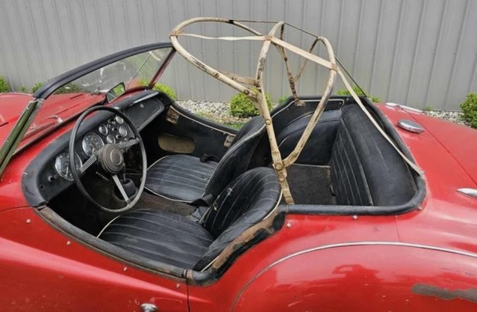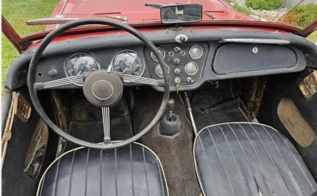 First off, the car runs and drives. The standard engine was a 1991 cc four-banger breathing through two SU carburetors, good for about 95 hp. The optional 2138 cc version produced about 100 hp. Sparkling performance had helped sell the TR series since the 2 arrived, and its sibling was no different. Top speed was a notch over 100 mph, and acceleration was at least as good as its competitors. A four-speed manual could be augmented with overdrive for an extra $150. Front disc brakes arrived in 1959 – a first for a British production car. The seller notes that one of these SUs misbehaves; I find it’s tempting to blame carbs for issues like ignition or a sketchy fuel pump, but the vendor is experienced, so maybe he’s right.