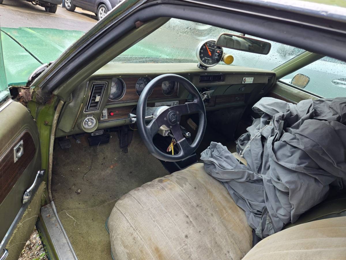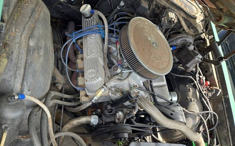 It looks like it was originally lime green judging from the jambs.The body gaps look pretty good with the exception of the hood – and looks like a little tweaking would sort that. It has Chevy style mirrors and is missing all of the belt trim for a 71 Supreme. Other than that, for less than 3k, if it runs, drives and stops on its own power, it could be a good deal pending the extent of the rust. Looks like numerous alterations in the engine compartment, including the heads, so who knows…a couple missing items would seem doubtful it is an SX, but a transplanted 455 is possible. The easiest way to tell, besides looking up the block casting number, is to measure the width of the intake, 350 is around 12 inches and a 455 is about 14 inches.