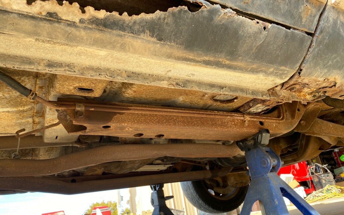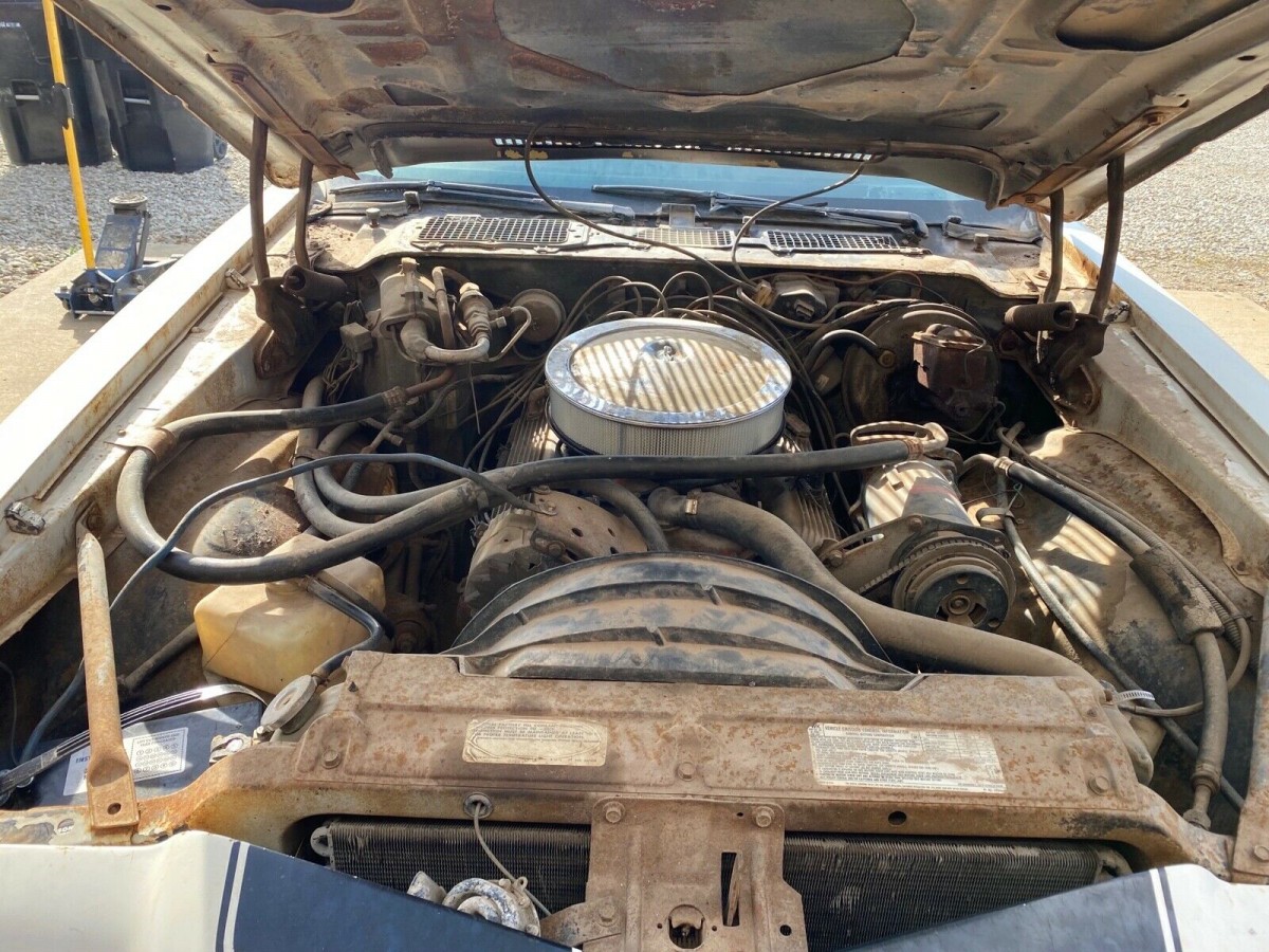 The seller’s car is a barn find in rough shape that he’s done some work on to get it to where it is today, but a lot of challenging work and budget are still needed. The car had been sitting for more than 20 years, which helps explain why the odometer reading might be just 64,000 miles. After replacing the old gas with new and changing out various vacuum lines, he was able to get the car to fire up and run. The coaxing also required a new starter and a shot of oil in the cylinders before installing new spark plugs. And it seems as though the engine is numbers-matching.