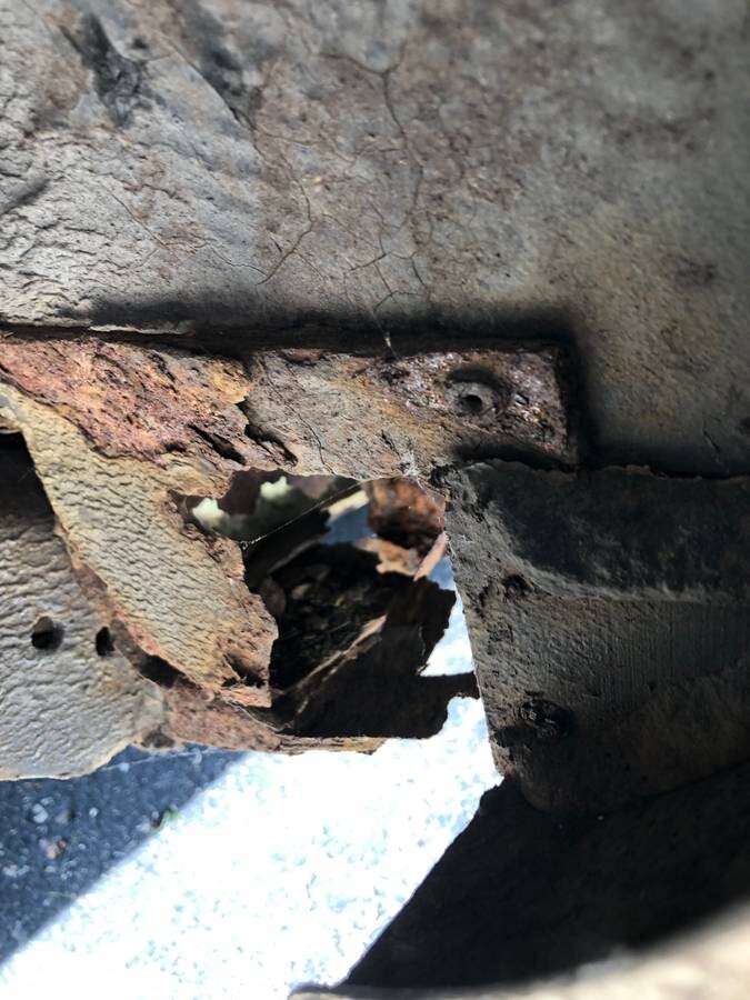 The troughs are really just outriggers to adapt the Avanti body to the much narrower Lark frame. I gather replacement troughs are available in a revised two-piece design that can be installed with the body kept in place on the frame.