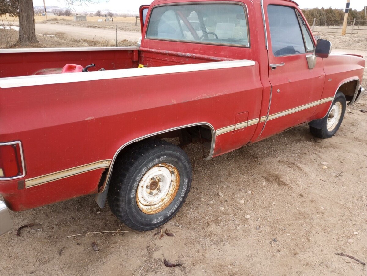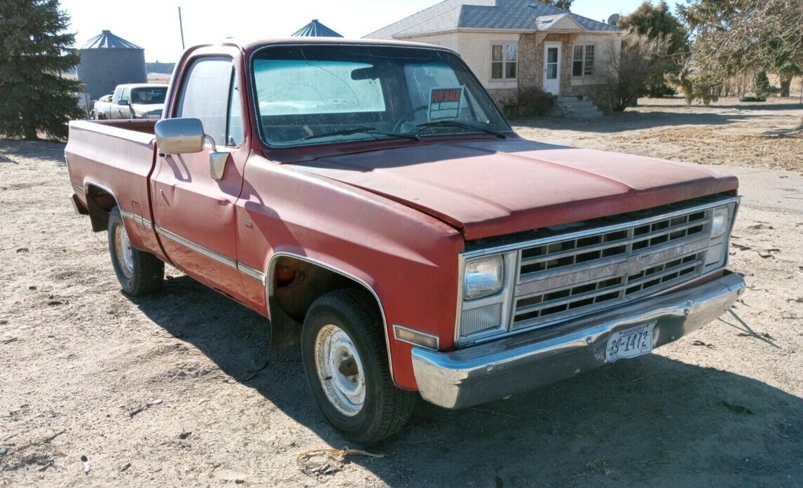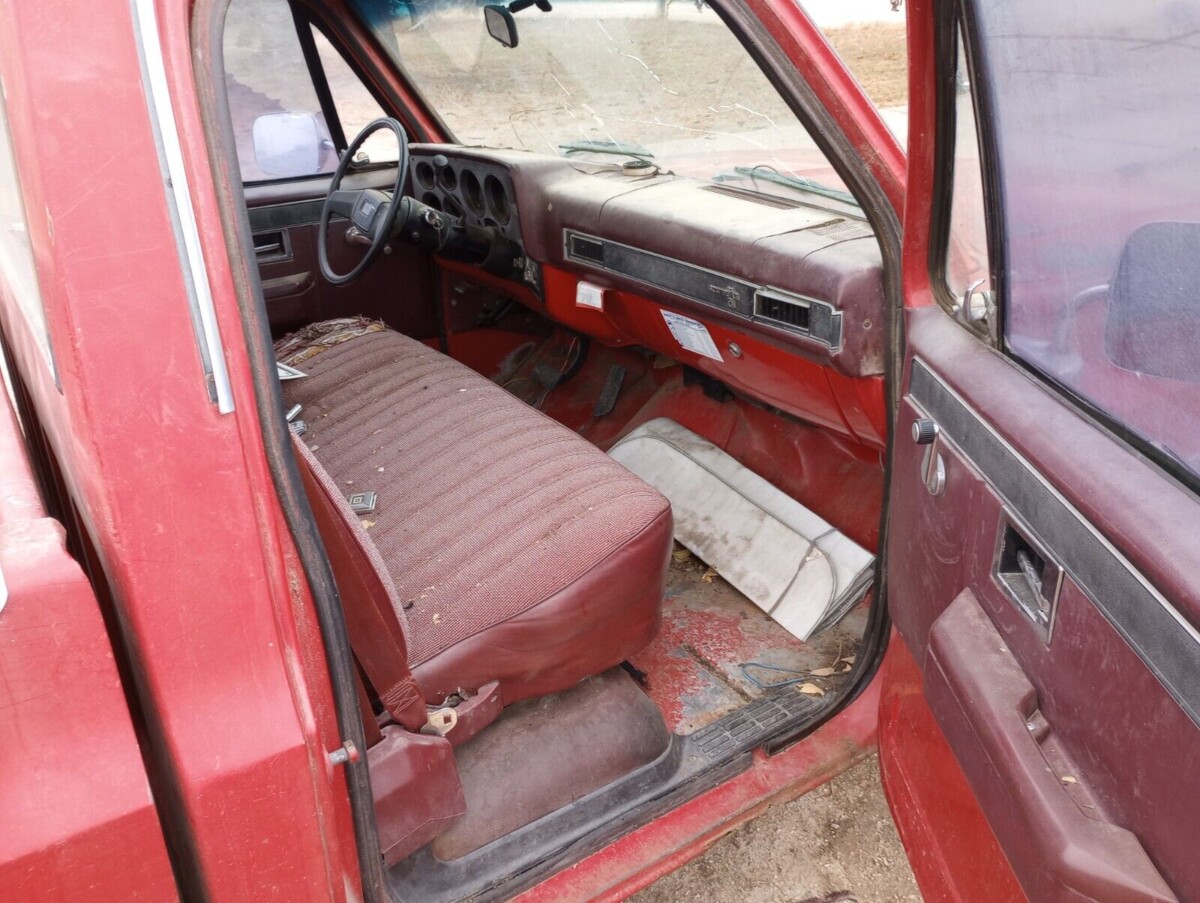 The Chevy is in Nebraska, which should be good news for finding nominal rust or at least corrosion that’s easily repaired. The interior is tired cosmetically but appears to be all there, and impressively, the bench seat isn’t even all that torn up (at least from this side of the cab.) The red-on-red-on-red color scheme is very 1980s, and the truck appears to be largely unchanged from its factory-fresh condition (aside from the years of dirt, grime, and muddy boots). This C-10 sports crank windows and manual functions throughout, so while it isn’t luxurious, there’s also very little to break. The dash pad, however, should be replaced.