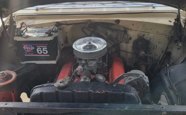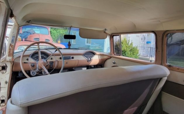 Including the seller, this 210 has only had three owners in its 70 years. We’re told the Chevy is original, although much of the interior is nicer than the exterior because of previously used plastic covers. Besides opting for the V8, the order form had a box checked for the 2-speed Powerglide automatic transmission. It was in storage for many moons, yet the seller tells us it runs and drives now (how well?). The gas tank had to be flushed, the carburetor rebuilt, and the water pump replaced, along with some other items.