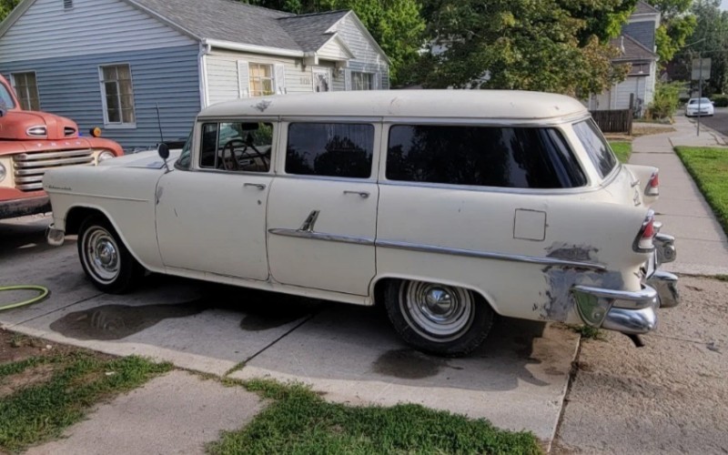 The “Tri-Five” Chevies of 1955-57 were huge sellers, approaching five million units before the beefier ’58 models came along and turned out to be a single-year design. Nearly 1.8 million 150s, 210s, and Bel Airs came down the assembly line in 1955, including more than 84,000 Townsman wagons like this one. While a bundle of them were ordered with the 235 cubic inch six-banger, a lot of buyers had been waiting for Chevy to do a V8 (Ford had one for years). The displacement was 265 CI, and one of them found its way into this station wagon.