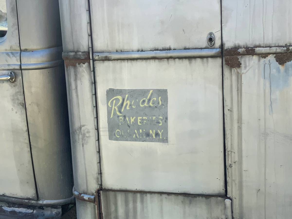 I live about two and a half miles from the old Rhoades {Bambi} bakery as it was also known. When I was a kid ,I lived straight across from where I now live. I would love to bring this piece of Olean history back home Olean,NY. I would love to make a camper/swap meet hauler out of it.