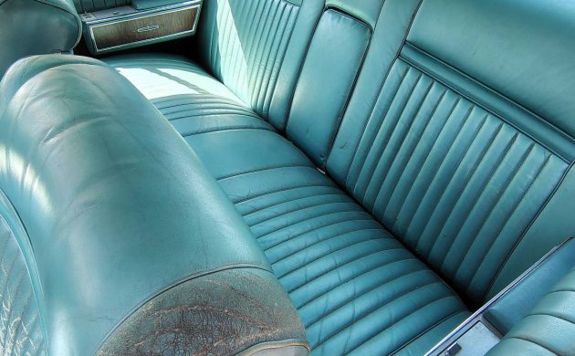 You can see some damage on the driver’s seat in this photo. Here’s a better photo showing the seats; they look a little rugged overall. The engine is Ford’s 462-cu.in. OHV V8 with 340 (gross) horsepower and 485 (gross) lb-ft of torque. It’s backed by a three-speed automatic, and it’s said to run great, has a new exhaust, and a new water pump. Hagerty is at $11,700 for a #4 fair-condition car, how much would you pay for this one?