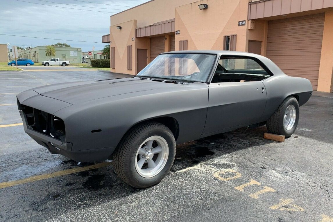 The Camaro is currently finished in a guide coat. Because there is no evidence of its original Fathom Green paint, the buyer can choose whatever color takes their fancy to apply to this classic. The panels are laser-straight, with no signs of any dings or dents. Preparing the steel for paint won’t take a lot of work, and it appears that the buyer will be working with a better body than average. All of the panel gaps are tight and consistent, and I believe that they are a cut above what Chevrolet would have produced originally. The owner says that the doors open and close like new, while the same is true for the hood and trunk. There are many trim and chrome pieces that will need to be refitted when the paint is complete, but the owner is including front and rear bumpers, front and rear spoilers, an RS grille, and all of the glass. The American Racing wheels and the Mickey Thompson tires are new and are included in the sale.