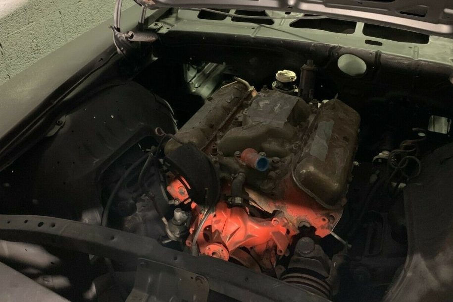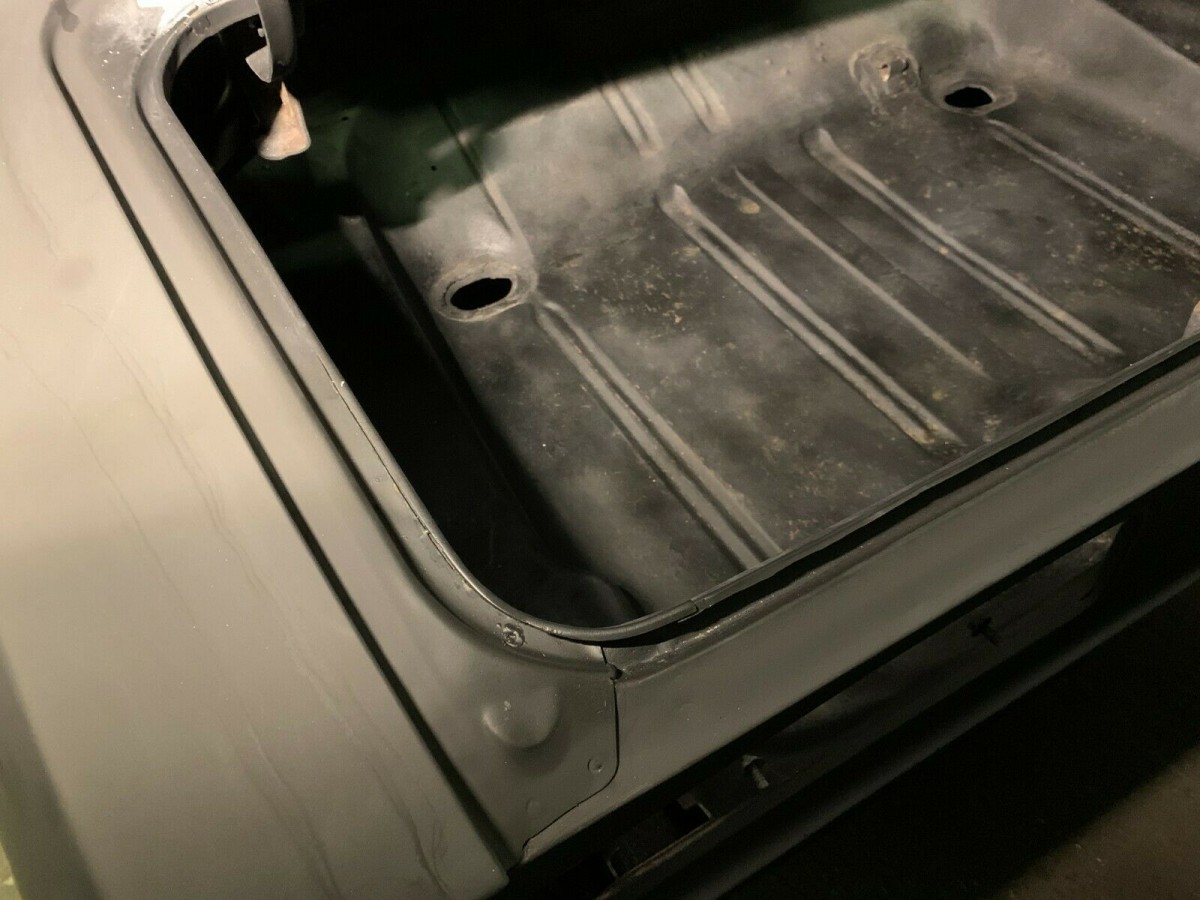 Not so fast on the laser straight body claim. Un-blocked flat black guide coat can hide plenty of horrors. Close inspection of the ebay pics appear to reveal a couple of problem areas. See how the rocker to RH quarter body seem disappears along it’s length? The hole for the antenna on the RF fender also seems to be making an appearance. A close inspection of the RH door looks to have pits, and sanding scratches buried under a ton of primer. My money says the seller mopped a bunch of primer on top of marginal body work to send it down the road. Caveat Emptor!