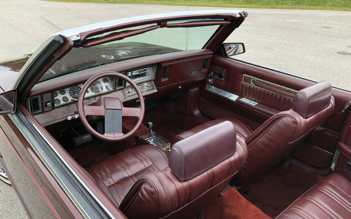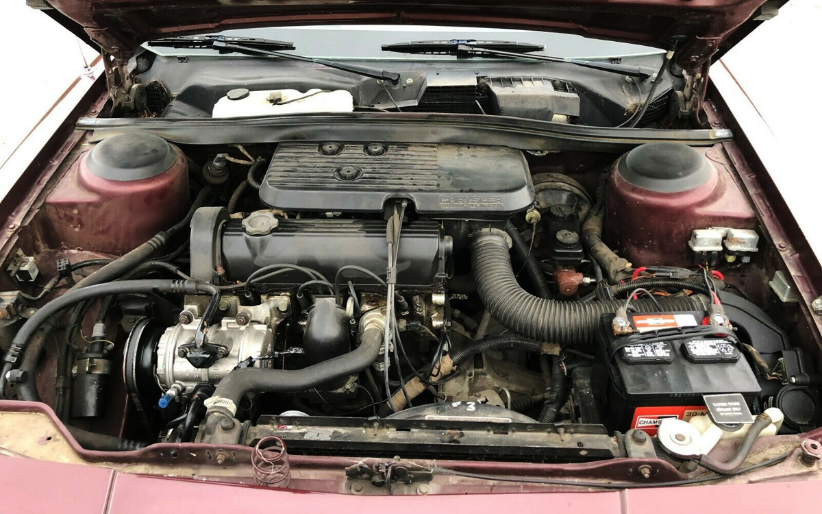 The interior looks almost like new both front and rear. It has Chrysler’s TorqueFlite 3-speed automatic with a floor shifter and this one has analog gauges. Mine had digital gauges and it talked to me since I didn’t have any other friends. I don’t know if the Dodge version has a little white switch in the glove box to turn the voice command on or off, but it was pretty cool in the mid-1980s to have a car tell you that “your lights are on” or your “door is ajar”. The convertible top on this one looks like new and I’m hoping that the seller has the boot for the convertible top when it’s in the open/down position.