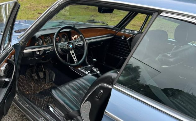 Those shock towers are among the most vulnerable spots on an E9, so seeing what looks like absolutely rot-free metal under the hood is a very good sign. Now, this E9 sports the 3.5L M30 engine, likely from a donor car such as the E24, and it’s a popular upgrade over the standard 3.0L. Plus, it’s from the same engine family, so it’s an OEM+ upgrade in many ways. Still, it always bothers me just a bit that the numbers-matching engine isn’t present, especially for $90,000. I understand this isn’t a mortal sin to have swapped in this engine, but I’d at least like to see that it comes with the factory-installed mill on a pallet.