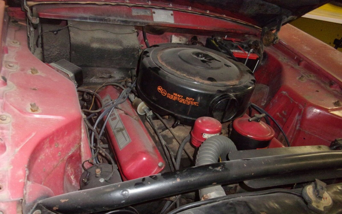 Now this car is an interesting ’50’s survivor, something different from the endless parade of Tri-Five Chevys and Crown Vics. While it needs some interior work, I’d just leave the rest alone. Get it running, go over the brakes and preserve the exterior as-is. Very cool car; love the bizarre two-tone red and white..