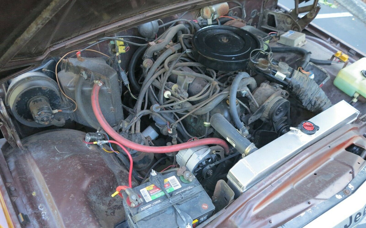 The 258 cubic-inch inline-six was made by AMC for a couple of decades and this one runs great but it has a small exhaust leak, possibly from the exhaust manifold. A new alternator and radiator were installed and it sounds like it’s ready to go. Have any of you owned a Jeep J-series pickup?