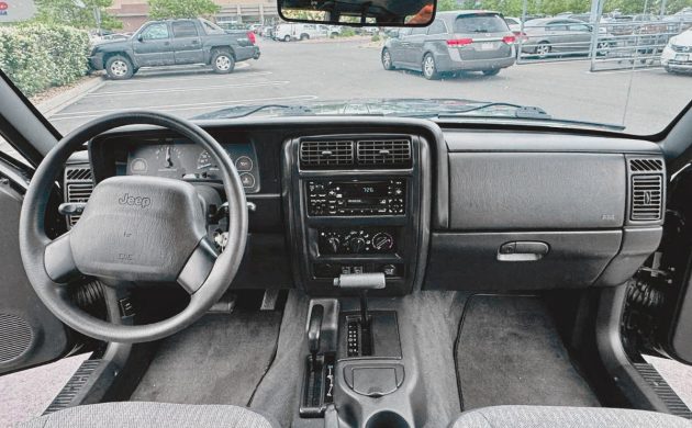 This one has the basic “idiot light” instrument cluster. Mine did too, but I dropped in a used full-gauge cluster. It does just drop in – no changes at all needed but the mileage is stored in the instrument cluster. I also upgraded the rear brakes to discs, which is a fairly straightforward conversion using parts from a Jeep Liberty or mid-1990s Grand Cherokee.