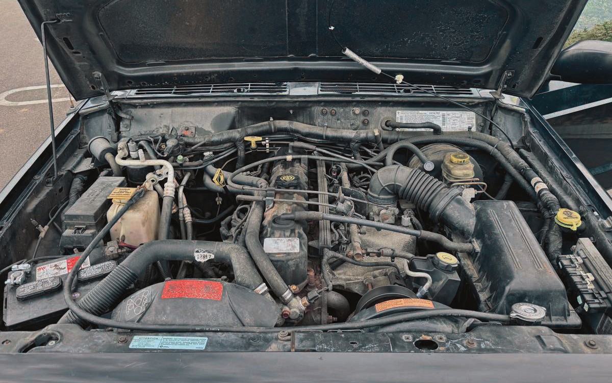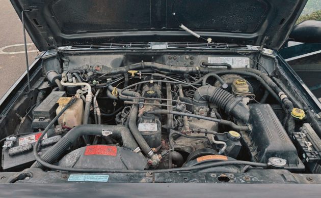 The XJ Cherokee was made from 1983 through 2001 under various corporate ownership, starting with AMC, then Chrysler, and finally, DaimlerChrysler. The interior looks as close to new as I can imagine any Jeep Cherokee looking. The Gilmore Cloth seats in “Agate” (even the upholstery gets a fancy name) appear perfect, both front and rear. Even though this was from San Diego, I don’t see any cracks or sun damage. A good, home detailing job would have done wonders for the presentation, though.