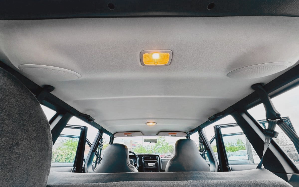 The seller bought this Cherokee in San Diego and says it was an estate vehicle owned by an older woman who passed away. They drove it home to Colorado, and it worked like a gem, not to mention getting 20 mpg on that trip. Here’s what the rear cargo area looks like, by the way. The headliner is new, and the seller even included a photo of that – nice work. The only thing we don’t see is the underside, but they say it’s a rust-free California vehicle, and it looks great in the photos.