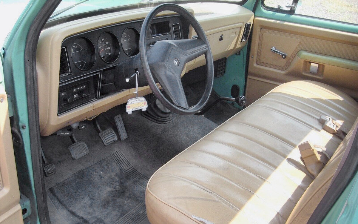 The engine is Dodge’s 225 slant-six, which in this case would have had around 100 horsepower. This truck has power steering, power brakes, and air-conditioning and those are three nice features that none of my Dodge vans had back in the early-80s. Have any of you owned a Dodge pickup from this era?