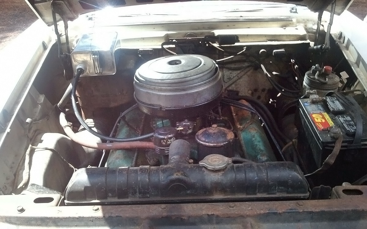 It’s incredible to think that this 65-year-old car is all original, or mostly original other than a couple of dings and touch-ups on the white paint, according to the seller. The Dagmars on the front bumper are indeed impressive and the full-width grille is beautiful. Everything works but the power antenna, it’s stuck and will need to be checked out. I had one replaced about a year ago so it can be done.
