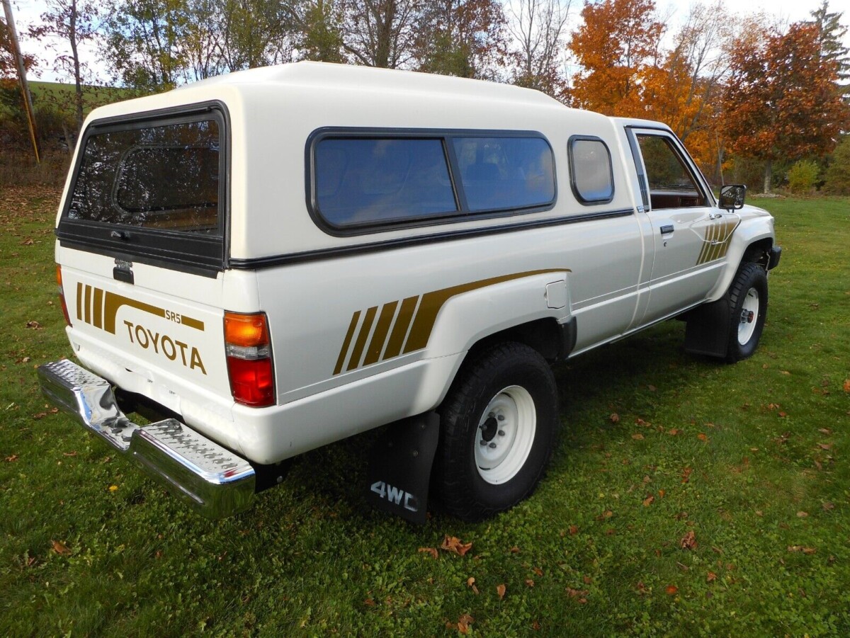 The interior is in phenomenal condition and the theme of white and brown/gold continues inside the cockpit. The seller claims this Toyota looks like it has 9,000 miles as opposed to the 97K on the clock, and I’m inclined to agree. It really is stunning inside, with a crystal clear gauge cluster, crack-free dash, lustrous black surfaces, warning labels still affixed to the dash, and spotless upholstery. The Toyota has the preferred manual transmission that helps to get the most juice possible out of the durable-but-anemic 22R four-cylinder engine. The seller notes the Hilux retains all of its original paperwork and manuals, hopefully residing in that still-latching glovebox.