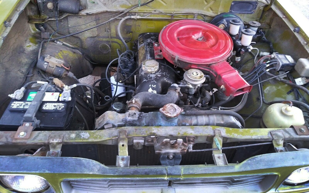 The engine and engine compartment sure look original, or at least unrestored. This is Toyota’s 18R, a 2.0L inline-four with just over 100 hp. The seller says that it drives and shifts beautifully and for fans of original, rust-free small pickups, it may not get much better than this.