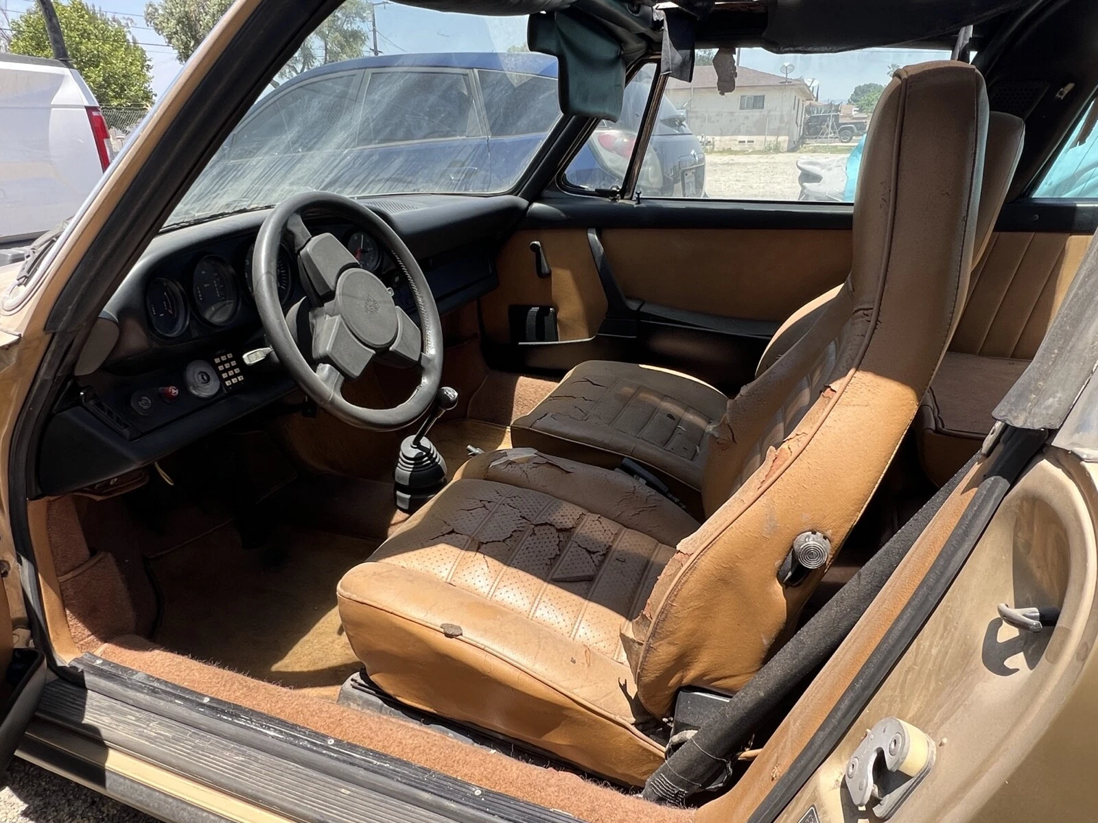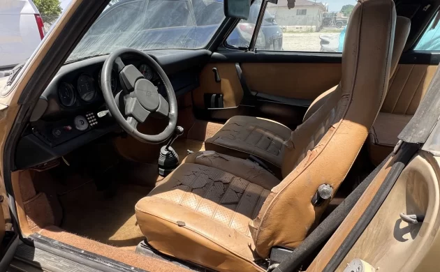 The interior shows sun damage on the seats but incredibly, the dash doesn’t appear to be cracked. The other details you notice in the listing is the targa panel which literally has sunlight poking through it, which again suggests that this 911 sat outside for a few years but that doesn’t explain the uncracked dash. Regardless, you have to be a fan of tan and its relatives to enjoy this car, and since the door jams show similar shades suggesting it may still wear factory paint in places, I would plan on keeping the colors pretty close to what they are now when the inevitable respray happens. The good news is that if it is Bamboo Beige, this is one of the rarer factory colors offered in this era if air-cooled 911s.