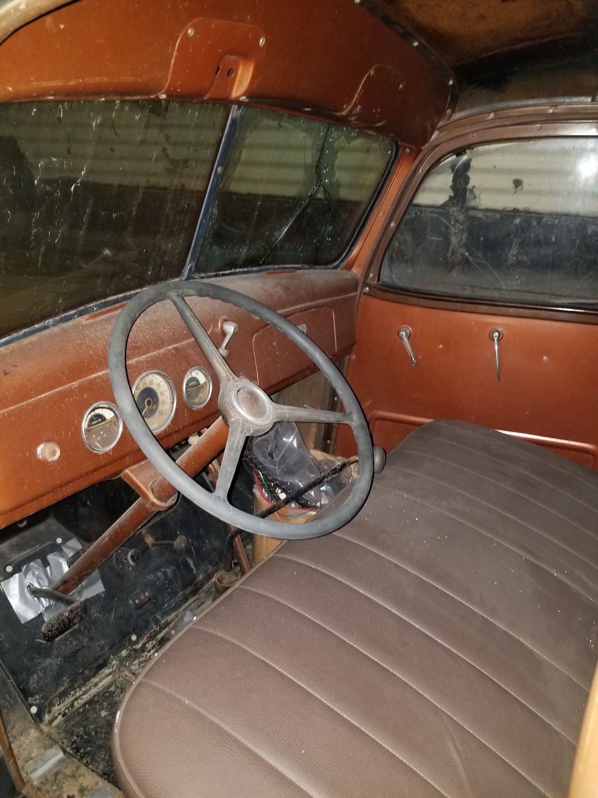 I sure wouldn’t kick this one off my driveway. It looks to me like a good cleanup and tuneup and it could be driven while you fix the rest of it. 235? Possibly but it would’ve had to be switched out as the tried and true 216 babbit-pounder is the most likely. For the likes of me, it would do just fine. I prefer the ’39 over the ’40 strictly for the lack of the parklights on the fenders; I like the smoothness. On or about the mid-30s, GM started to standardize the interiors of its trucks. Prewar, they were a light brown/tan (I could be corrected as to the exact tone), and postwar they were more of a bronze color. It didn’t matter what the exterior was, the interior ended up with the standardized color which the General kept up until ’67. A friend of mine restored a ’38 GMC a few years ago and we were trying to determine the proper color (the interior had a lot of peeling and surface rust making it impossible to determine exactly what they had.