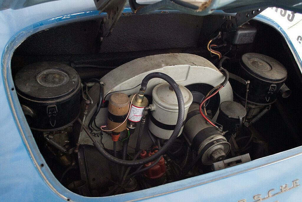 The same goes for the interior, which has survived incredibly well for a car that’s meant to be driven with the roof off. The 356B roadster (and Convertible D before it) perhaps made the greatest departures from the original Speedster concept in the cabin, where passenger comfort was prioritized over weight reduction, with the incorporation of features like full windows with traditional winder mechanisms and bucket seats with plenty of padding. The interior also shows a painted dash in outstanding condition, unmarred door panels, clear factory instrumentation, and the original steering wheel.