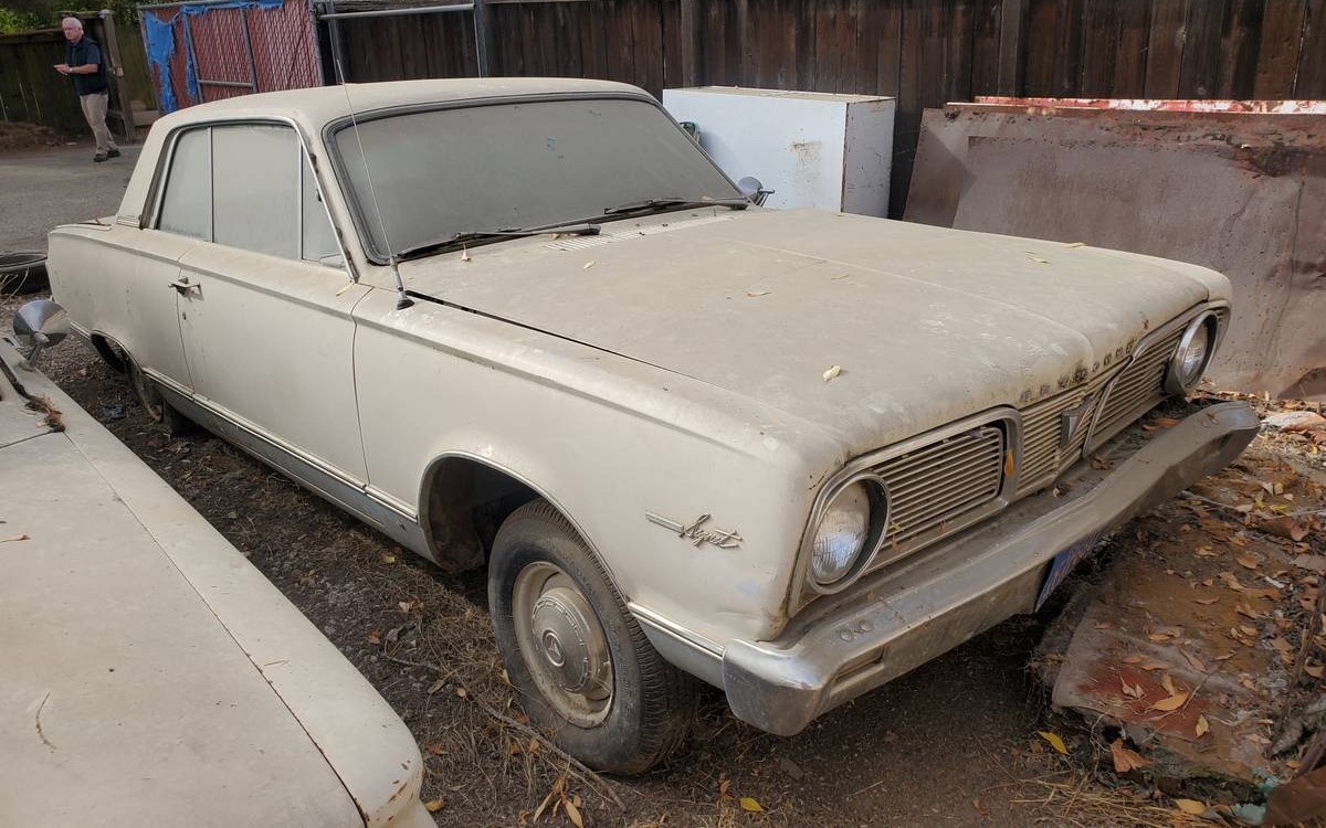 The top of the line Plymouth Valiant for 1966 was the Signet, above the V100 and V200 models. They normally came with full wheel covers which this one doesn’t appear to have. The second-generation Valiant Signet was available with a vinyl top, reportedly a first for Plymouth. This dusty car could really look nice, like this one, in restored condition. Although, it sure looks like it could be cleaned up, doesn’t it? It can be found here on craigslist in Merced, California with an asking price of $1,000. Did I mention that there’s no engine in it but there is an automatic transmission? Thanks to local_sheriff for sending in this tip!
