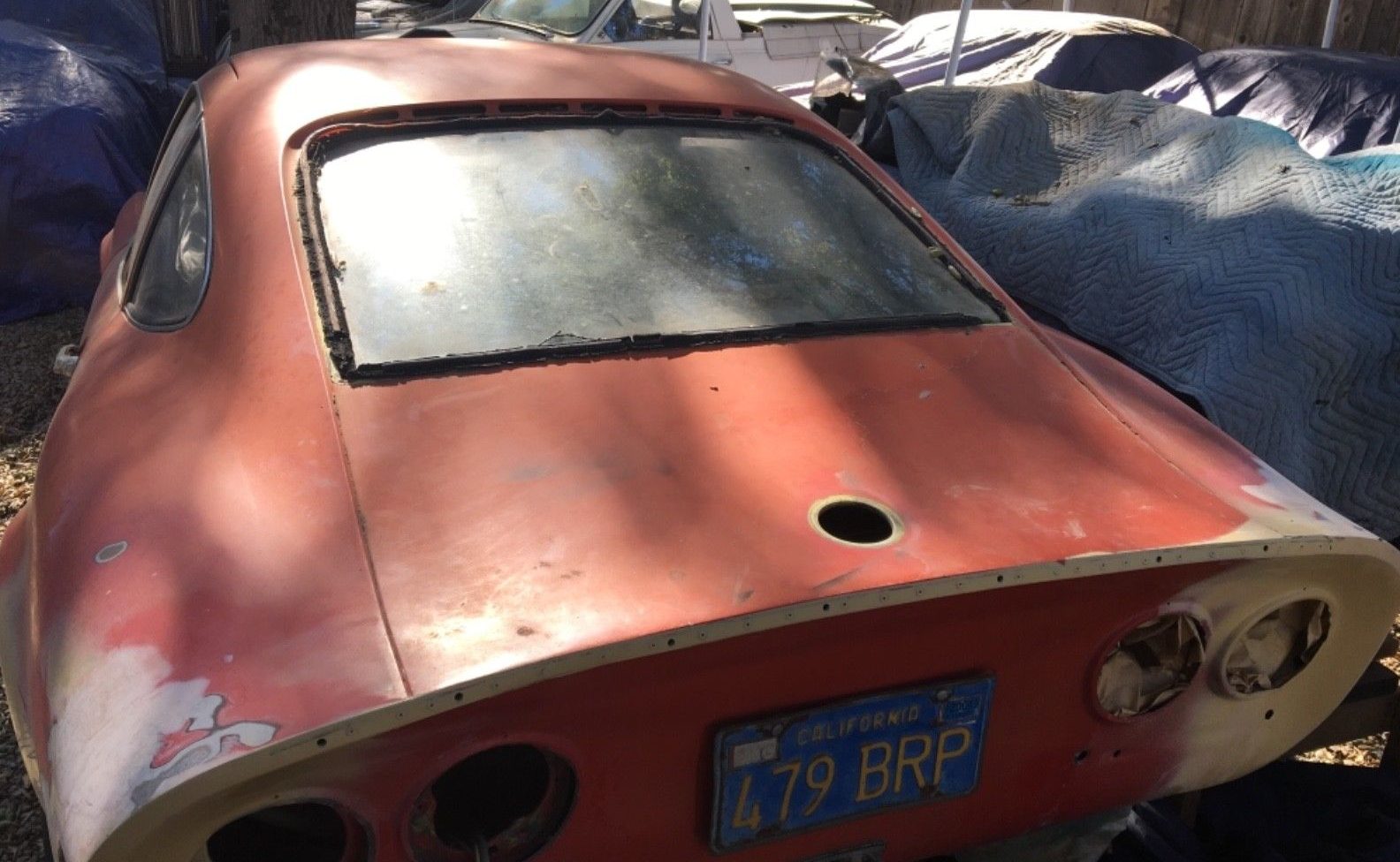 There’s the trace elements of previous paint I spoke about. The seller says the seats will be included with the sale but there looks to be some other replacements needed in the interior – you can see the weatherstripping was removed, revealing the original paint, and it looks pretty tired. The dash is also cracked and who knows how the switchgear still functions. The opening bid is way too strong at the moment – drop it down to $2K and you might see a few bites, or take the covers off of some of the cars in the background!
