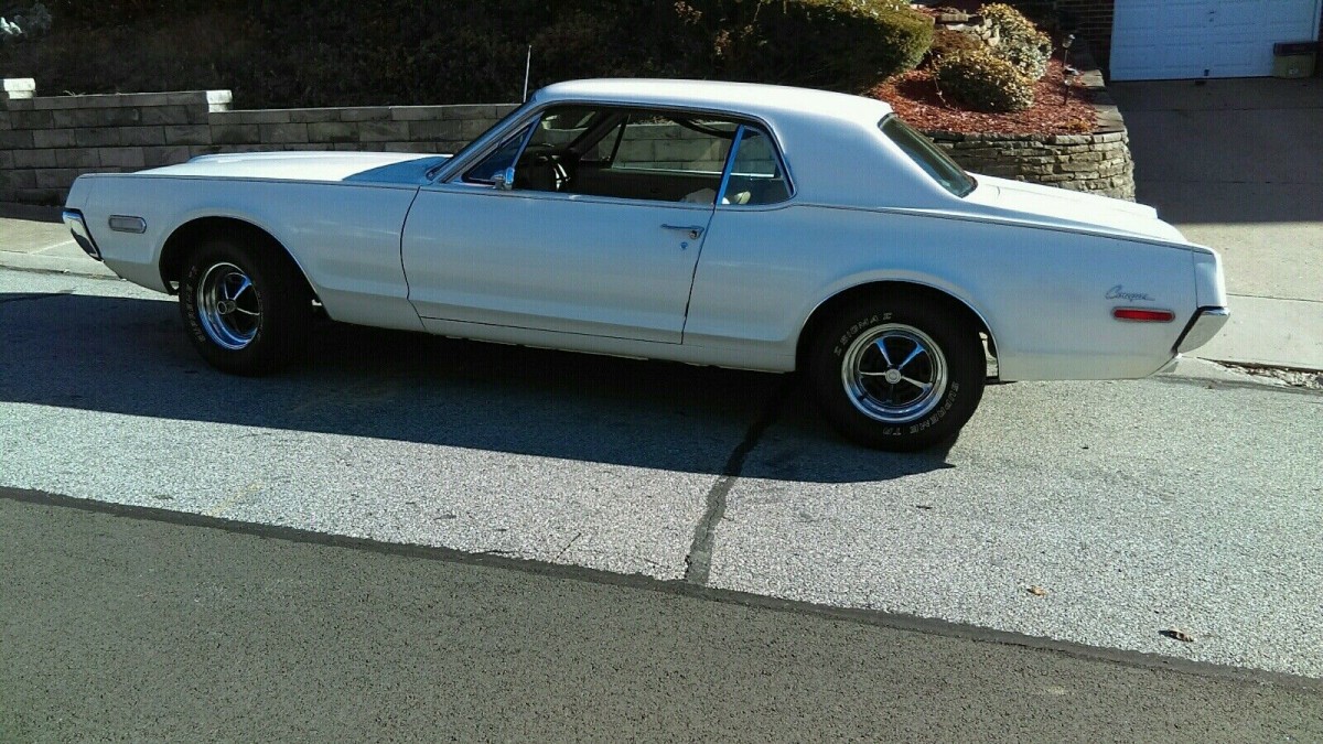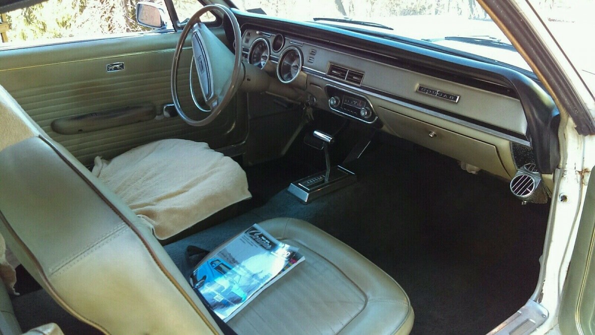 It appears that the owner found this Cougar squirreled away in a barn in 2015. When he washed away the years of accumulated dust, he discovered a classic that was in remarkably good condition. Its Polar White paint isn’t perfect, but it is definitely acceptable for a survivor-grade car. It holds a good shine, with no significant flaws or defects. The panels are extremely straight, and the gaps appear tight and consistent. However, the big news here is this car’s lack of rust. There is nothing visible in the supplied photos, especially in prone areas like the lower rear quarter panels, rockers, and lower fenders. The owner says that the underside is equally clean, meaning that this is a structurally sound car that requires no significant restoration work. The exterior trim is in good condition for a survivor, and the owner says that the sequential turn signals work as they should. The glass shows no evidence of problems, and the Magnum 500 wheels add a muscular touch to the exterior.