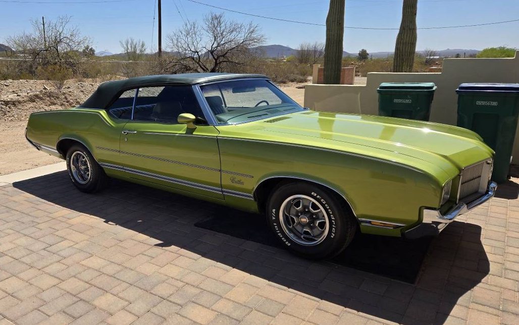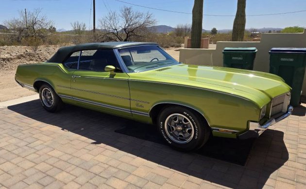 The folks from Lansing certainly built some nice cars, didn’t they? The Cutlass Supreme was their fancy intermediate, and in 1971 when this convertible emerged from the Oldsmobile plant, it was on the cusp of becoming America’s favorite car. The owner of this beautiful Lime Mist convertible says that it’s an “unmolested survivor car, rust free with original sheet metal” and 70,963 miles on the odometer. With Super Stock II wheels (a $73.72 option) and a complementary dark green convertible top, it looks like it might be worth its $37,900 asking price. Thanks to Barn Finds reader T.J., who found it on craigslist in Tucson, Arizona, and sent it our way.