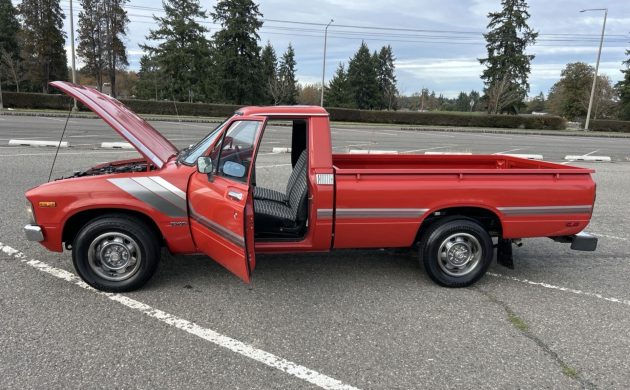 Rarely will you hear very many accolades from me on Asian vehicles, and consequently, have owned maybe a handful, but I actually had a similar truck for a spell. A ’79 or ’80, my ex-BIL bought the truck brand new. Funny story( aren’t all mine funny?) when he was looking for a truck, he wanted a base truck, NO OPTIONS. Nobody would sell him one, had to be ordered, they said and a 7 month wait! He went to 3 different dealers before he found one. He drove that truck to the moon,( 238,900mi) it had an astonishing 240K on it. The only things he did, was change the oil religiously, tires, brakes, but never anything else. It was pretty rusty by the time I got it, and was a 4 speed and I drove it for a couple months, but wanted something better. If there ever was a testament to the reliability of these, well, it sure convinced this Yankee Doodle Dandy.