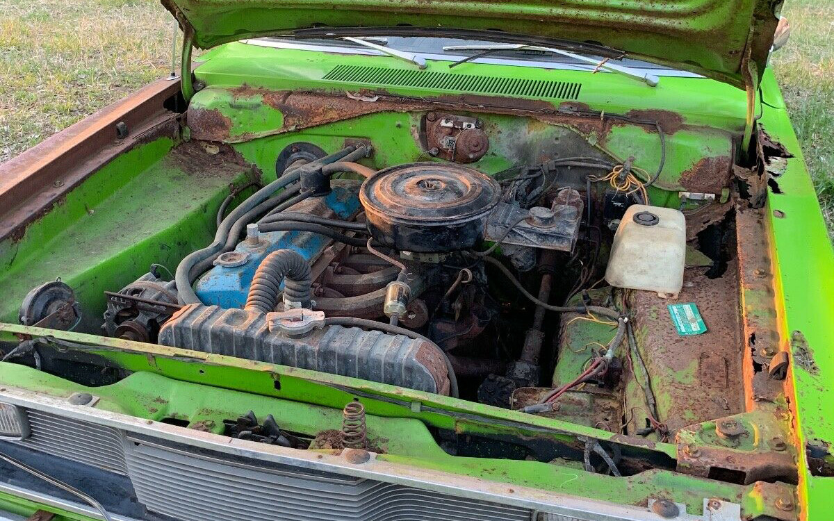Plymouth had several special edition Dusters including the Silver Duster, Feather Duster, Duster Twister, and Space Duster. This 1971 Plymouth Duster is not another special edition known as the “Ruster Duster”, it just needs a lot of help in that department. This Sassy Grass green Duster can be found listed here on eBay in Skaneateles, New York with an unmet opening bid of $3,000 and no reserve after that.