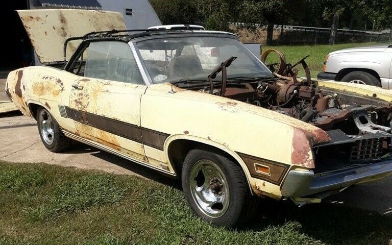 If you wanted a Ford convertible in an intermediate body style in 1970, the Torino GT was your only choice. The sportier edition of the Torino, with goodies like hideaway headlights, only saw 3,939 copies with a canvas top made compared to 56,819 fastbacks. This one was driven 78,000 miles before being parked and exposed to the elements in 1978. Salt air has been its biggest enemy and the entire automobile has rusted badly. It has a shaker hood which the seller will reinstall, but the air breather is in bad condition. The doors will not open from the outside and some of the glass is broken out. Yet the convertible top frame, trim, and hardware are said to be intact.