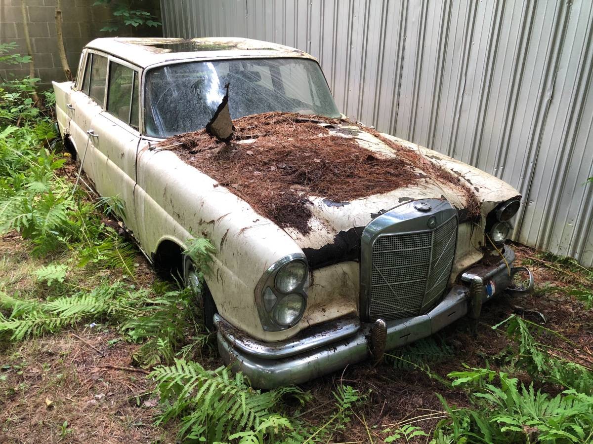 There’s something serene about this 1965 Mercedes-Benz 220 resting on among the ferns in New Hampshire. While it is quite rusty, the seller contends there’s plenty of parts value in this carcass, more than enough to satisfy the asking price of just $400. I tend to agree; do you? Find this rusty fintail here on craigslist, and thanks to Barn Finds reader Roger for the find.