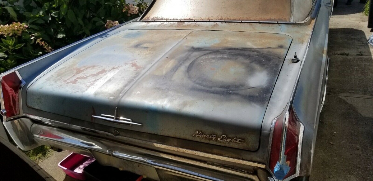 A girl down the street drove a 63 98 convert just like this one to school and back. She was about 5’3″ and had the seat all the way forward. My 6’2″ body was folded up sitting next to her! A very nice car back then and this one brought back fond memories.