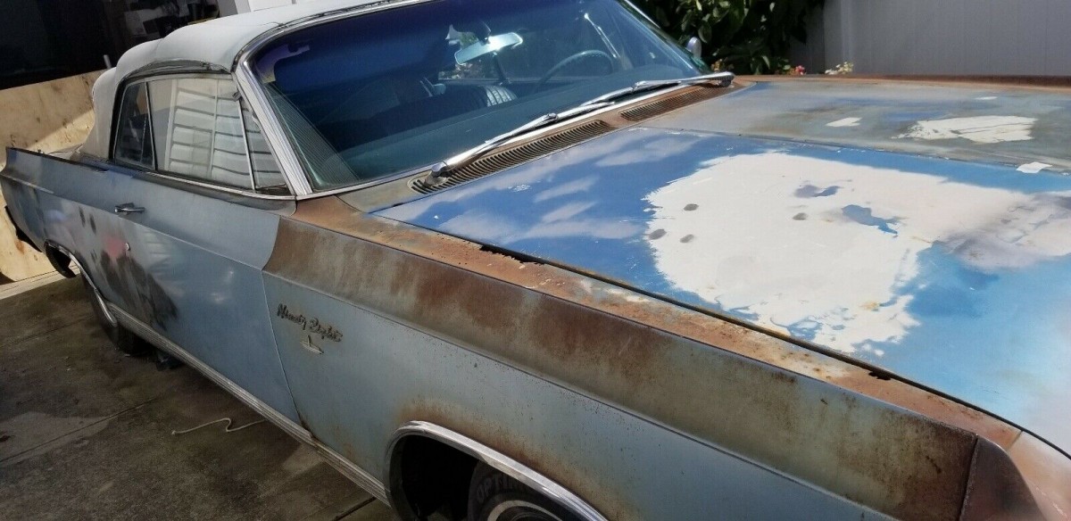 The 1963 Olds 98 rode on an exclusive 126-inch wheelbase. About 70,000 of them were built for that model year, but we can’t find a breakout by body style, but the convertible is likely to have the smallest portion of that number. At 75,000 known miles, the seller doesn’t give us a great deal of information about the car, with info like “all locks and keys work” instead of how long the car has been sitting and why. We do know that the 394 cubic inch V-8 is stuck, perhaps from years of inactivity. There is a new radiator sitting in the trunk, so efforts to bring it back to life may have started at some point. The ad says the title is clean, yet the seller also mentions that New York doesn’t offer titles on cars before 1972, so we’re not sure what he’s trying to tell us.