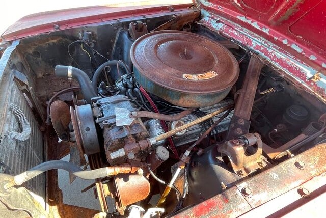Little is known about the seller’s car other than it was stored for many years. And from the looks of things, that storage may have been outdoors. For those into patina, this car has loads of it and the old red paint is starting to flake off, revealing the original Silver Smoke Grey that the car left the factory with. Corrosion on the sheet metal isn’t as extensive as on the undercarriage, specifically the floorboards. But everything down below is quite crusty, and sandblasting should reveal how much of a challenge awaits the next owner.