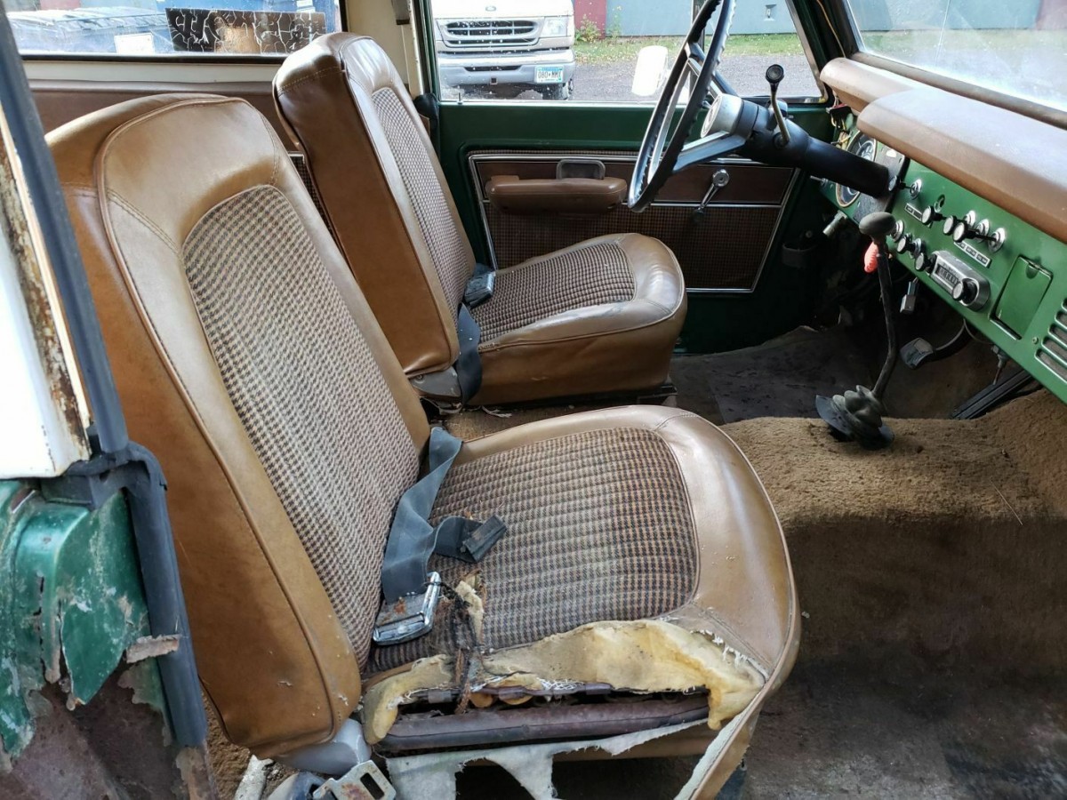 Given this Bronco was used as a plow truck for many years, it seems likely it started its life doing the dirty work of a Minnesota winter, and then repeating the cycle every year thereafter. That explains the sort of catastrophic rust you see here, as repeated exposure to road salt, sand and other winter muck is the root cause of the gaping holes in the body panels. Fortunately, the “ginger” interior is holding up better than you might expect when looking at it from the outside, with a decent dash and carpet pad.