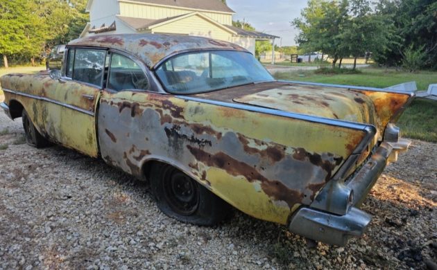 Chevrolet sold more than 1.5 million cars in 1957 – and they may be the most-sought-after of the “Tri-Five” Chevies today. The Sport Coupe is at the top of the list, along with the convertible and Nomad Sport Wagon. This ’57 Bel Air appears to have been sitting outside for ages and has significant rust and no drivetrain. Located in Joshua, Texas, this project or donor is available here on eBay for $2,850 OBO.