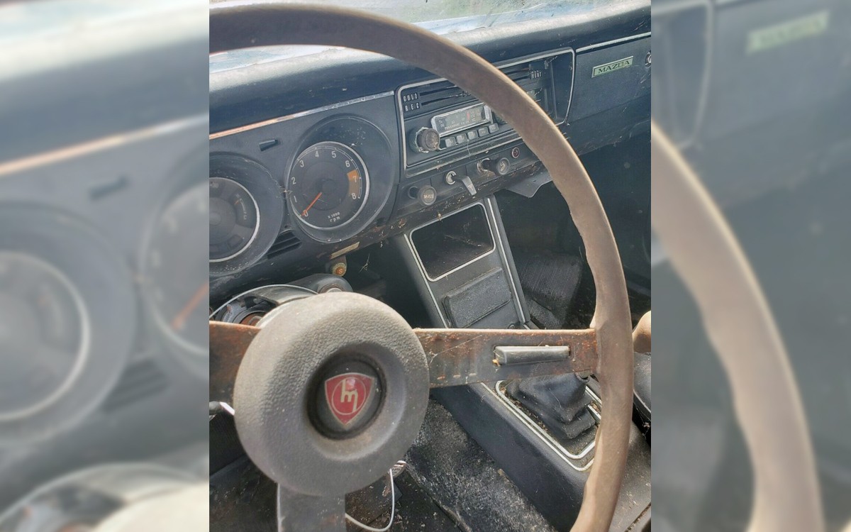 The big deal with the RX-2, of course, is its rotary engine. This should be a twin-rotor 12A and the seller doesn’t mention whether it runs or even turns over. By looking at the general condition of the car I’m assuming that it doesn’t run. They say that this is an all-original barn find and they are very desirable, but can this one be saved?