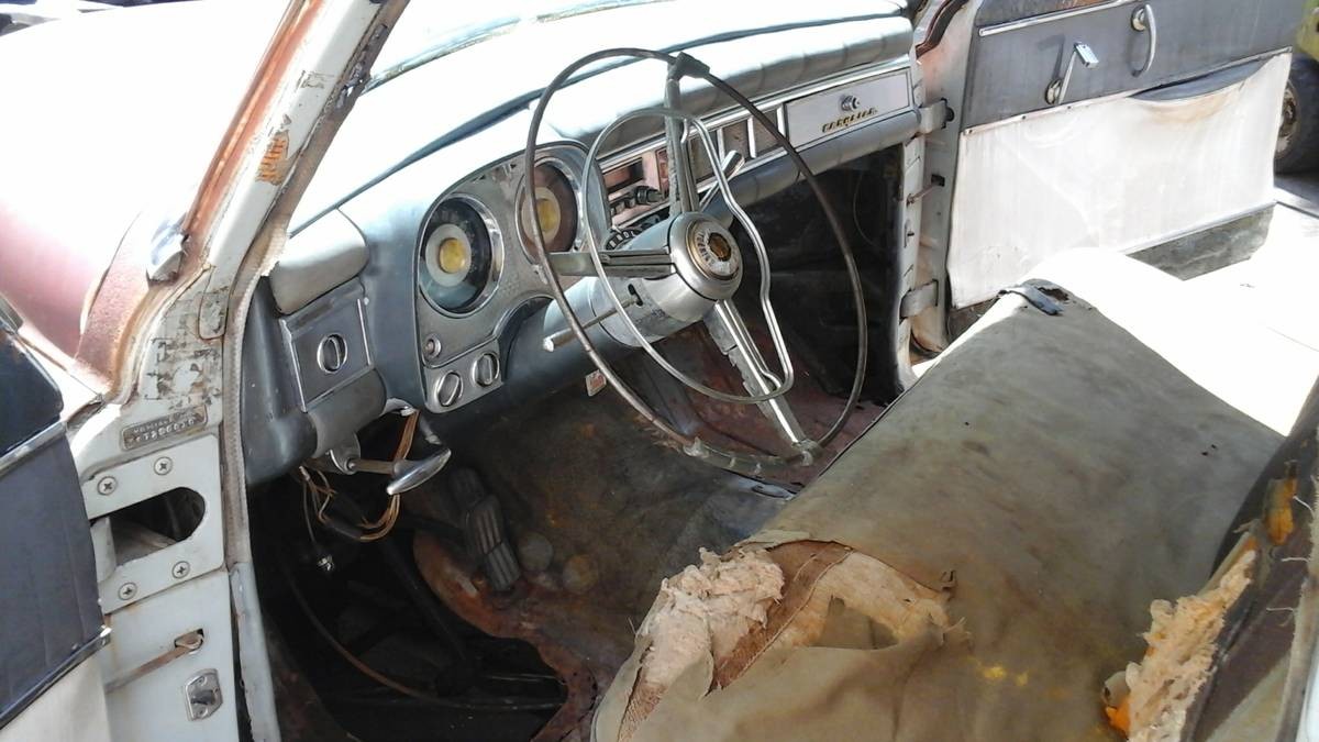 The interior needs work but is complete. From what is shown the dash looks good with the gauges and knobs being intact. The steering wheel is deteriorated and will need some attention before driving. If this were my car I would leave the exterior alone. On the inside I would restore the door panels and steering wheel, recover the seat and maybe some carpet; that would give you a fun driver that would be a hit at the car show. The other option would be to make it a parts car, but lets hope that doesn’t happen. I don’t think it would be a good investment to restore this one. What are you ideas? Would you save it?