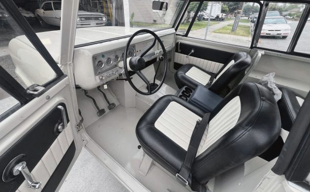The engine is a 4-cylinder, which is all we’re given, and it could be a 152 or 196 four. I’m assuming it’s the 152-cu.in. version with 92 horsepower and 142 lb-ft of torque, but I’m not sure. One of you International experts will know by looking at it. It’s backed by a BorgWarner T-90C three-speed manual with a floor shift, and power is sent to the rear wheels only on this Scout. They say it runs like a champ, and has new “paint, brakes, ebrake, seats, tires and mechanically very, very sound. Speedo and gauges are not yet working.” Hagerty is at $23,300 for a #3 good-condition example, so prices are really ramping up for early Scouts. How much would you pay for this Scout Sportop?