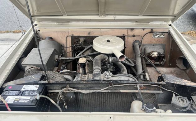 International made the Scout 800 from 1965 through 1968, and the Sportop is a nice model. The removable fiberglass top is unique, and the split rear bumper with the spare tire mounted on the tailgate makes this model even more unique. The Sportop model was first available in late 1965 for the 1966 model year, and the seller says this one has new paint, but some of the panels appear a shade different from adjacent panels. Maybe it’s a trick of light and/or shadow?