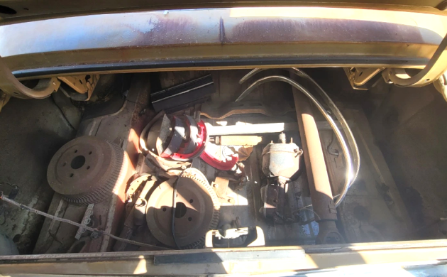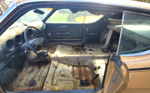 This Ford has already been picked off a lot of key stuff, including the interior. Only one of the two doors opens, and the trunk looks to be full of parts. The floorboards are rust,y and that’s not likely the only troubling spots. All the glass is there if you need a few panes for another ’68 Torino opportunity.
