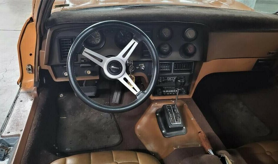 This SV-1 with its front-tilting hood is equipped with an AMC 360 c.i. 220 h.p. V-8, new owners having a choice in 1974 of a four-speed stick or, as selected here, a Chrysler automatic trans. Bricklin switched from the AMC engine in 1975 to a Ford 351 Windsor with only an automatic available. Only 137 opted for the four-speed manual for the model year 1974 – a real rarity of the small-number production. The brakes are front disc and rear drums. With most of the parts including engines, transmissions, front end suspension, and rear end assemblies coming from the U.S. to build SV-1s, the parts supply chain was a logistical nightmare for the fledgling company. This unretouched and unrestored survivor Bricklin is currently located in Goodyear, AZ.